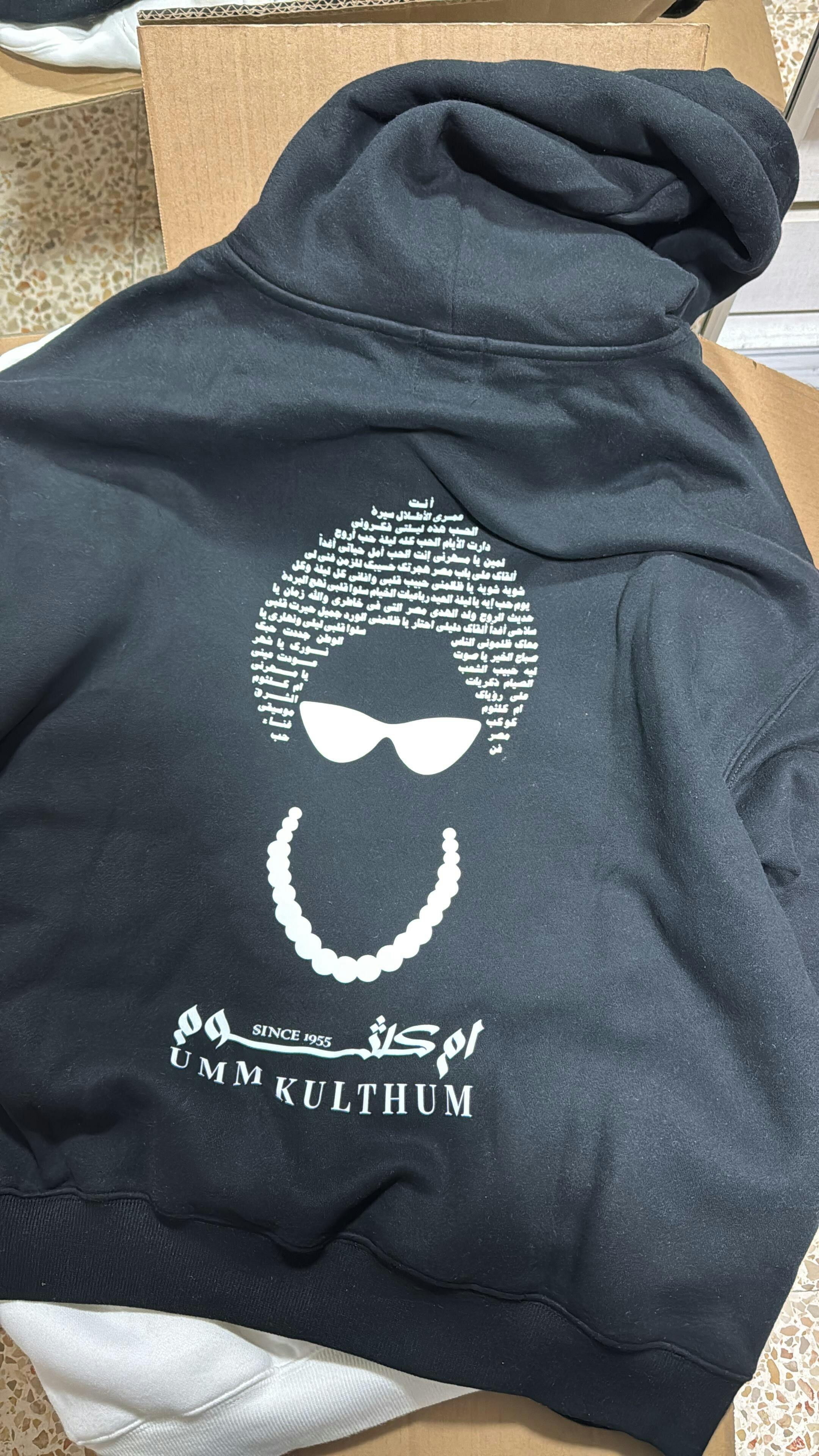 The back features a bold printed design inspired by El Sett, while the front carries a subtle Sawt Al-Zaman logo. Made from heavyweight fleece fabric, it offers warmth, comfort, and everyday durability. A unisex piece created for all ages — where music, memory, and style meet.